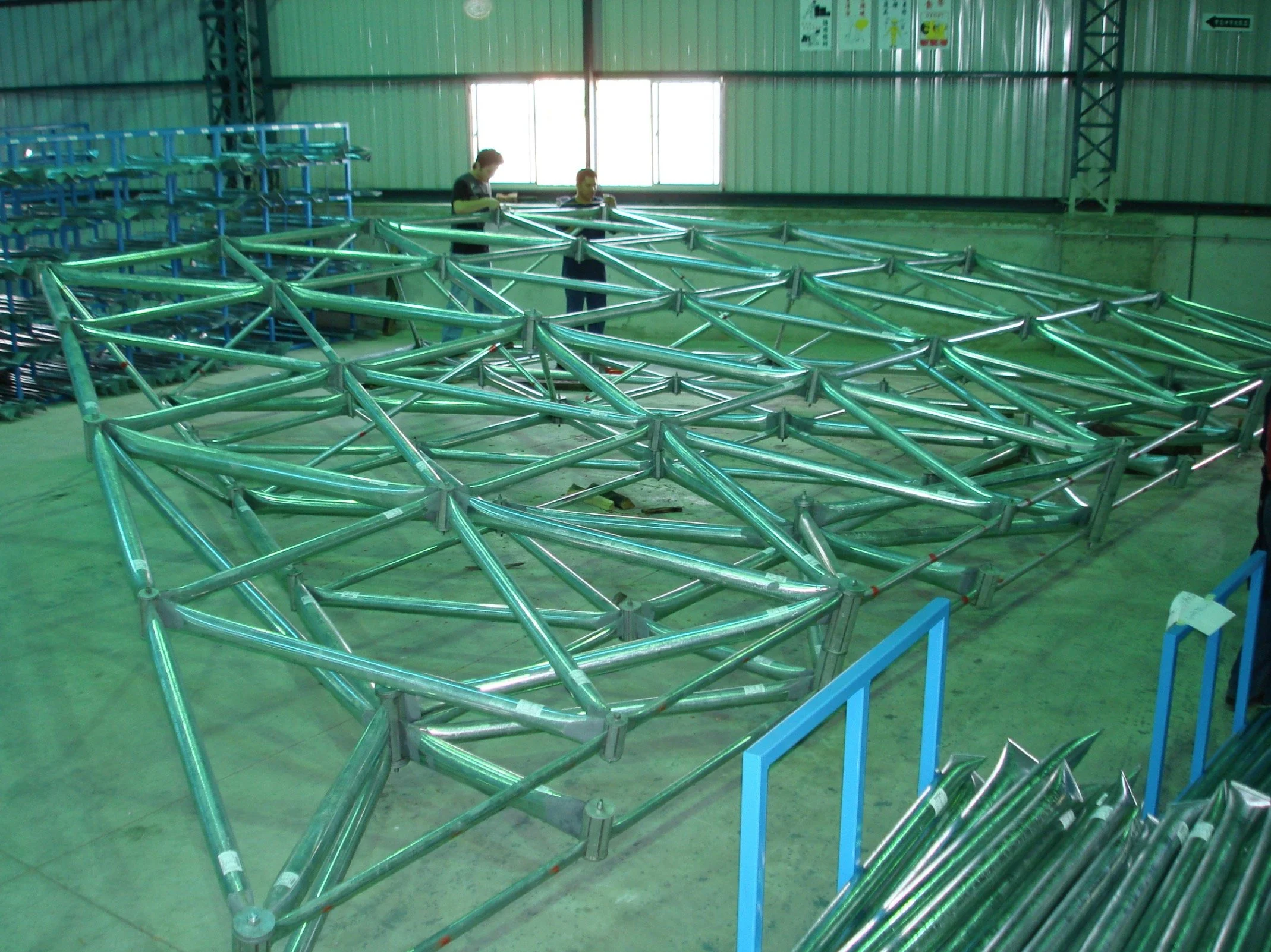 During the bidding process, we found that an ideal source for the raw galvanized steel tube was a local factory within half an hour of the jobsite. Geometrica and Triumstar decided to send a Geometrica production line to Kaoshiung. Thus was born "Hercules", the trade name for Geometrica's transportable production facility. Hercules would subsequently save lots of freight costs to job sites around the world. With it, raw materials are locally sourced. For this case, a dozen Geometrica specialists went to Kaohsiung to set up the temporary factory and to train local labor on the factory and on site.