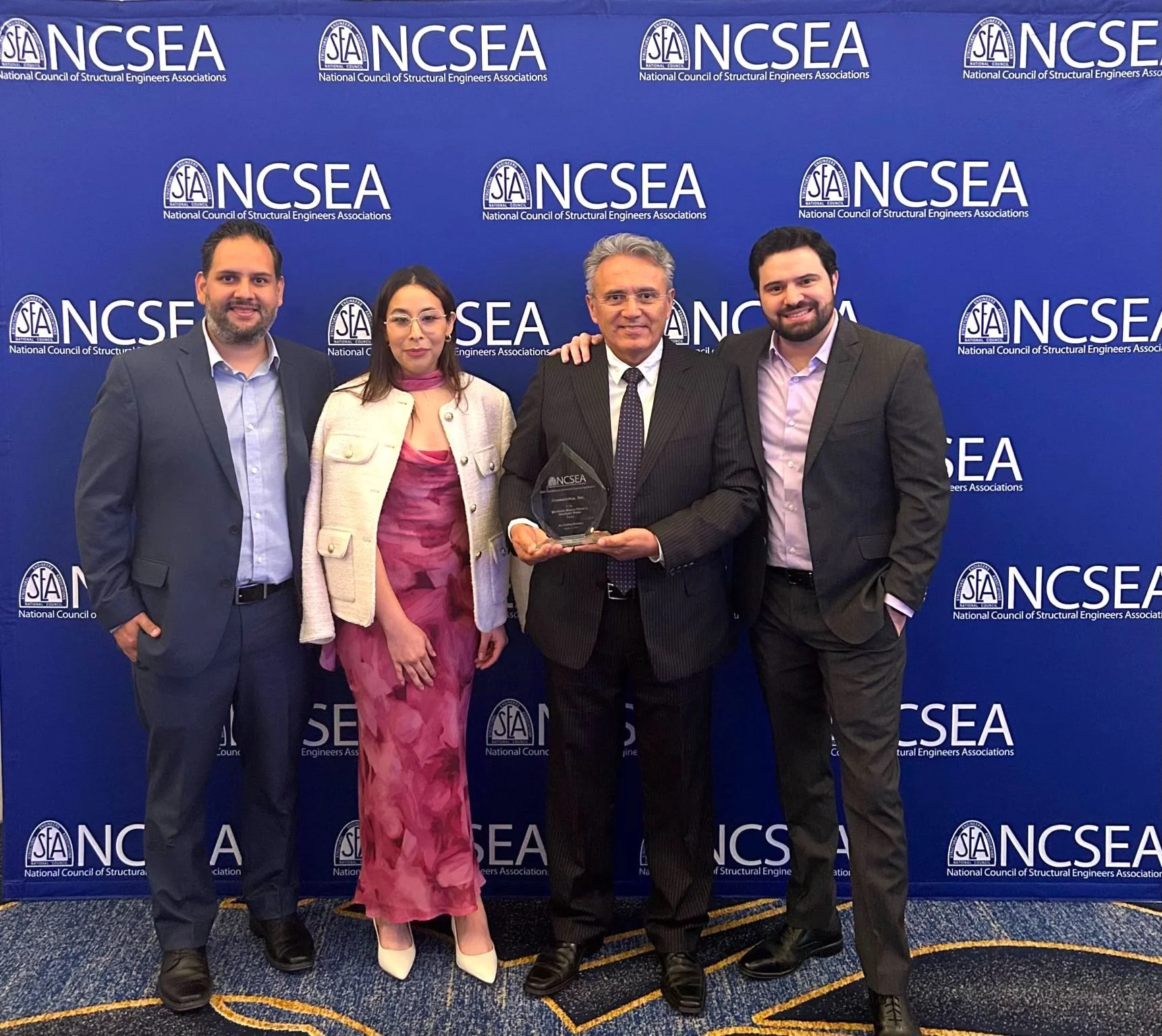 Cuatro de nuestros ingenieros — Jaime Rodea, Faviola Villela, Amaro Reza y Alex Algara — asistieron a la ceremonia de los SEE Awards el 16 de octubre en Nueva York, representando con orgullo a Geométrica y celebrando la innovación en la ingeniería estructural.